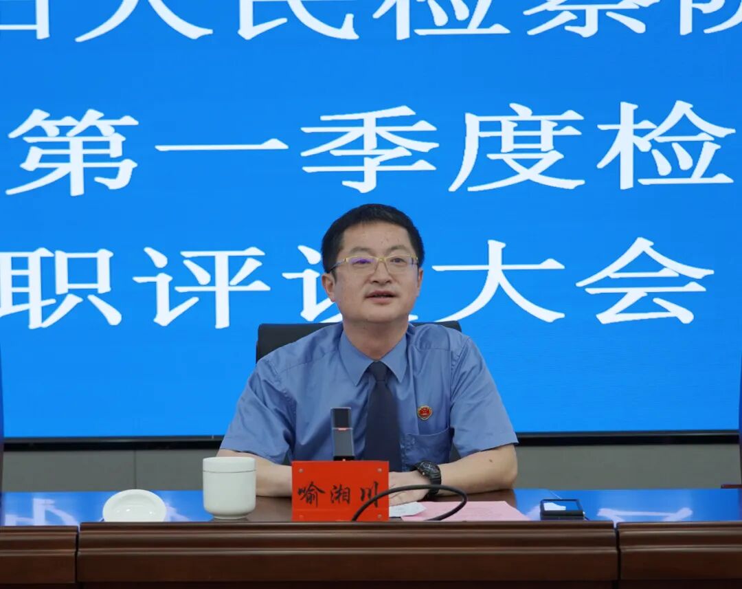 述职评议会现场,喻湘川传达了长沙市检察院余湘文检察长在市检察院2023年第一季度检察官述职评议大会上的讲话精神,一是要客观总结过去,在抓实抓常抓到位上下功夫。把牵头职责和配合职责理顺融通,把做好自己的事与精准对下指导融会贯通,把检察官述职评议和检察官业绩考核工作打通融合,切实用好考核“刻度尺”,确保考核评价全面公正客观。二是要认清当前形势,在真述、真评、真监督上下功夫。把工作发条再上紧一点,自我加压以更高标准做好本职工作,凭业绩说话、拿数据服人、用实干赢得尊重。对述职评议发现的深层次问题要注意跟踪、抓好整改,打通工作“最后一公里”。三是要做好闭环管理,在考实、评准、用得好上下功夫。把握从严考核标准,不断加强检察官述职评议工作,把考核结果作为评先评优的重要依据。要由表及里反向审视问题根源,切实抓好检察官业务能力评审工作,推动干部能上能下,员额能进能出。