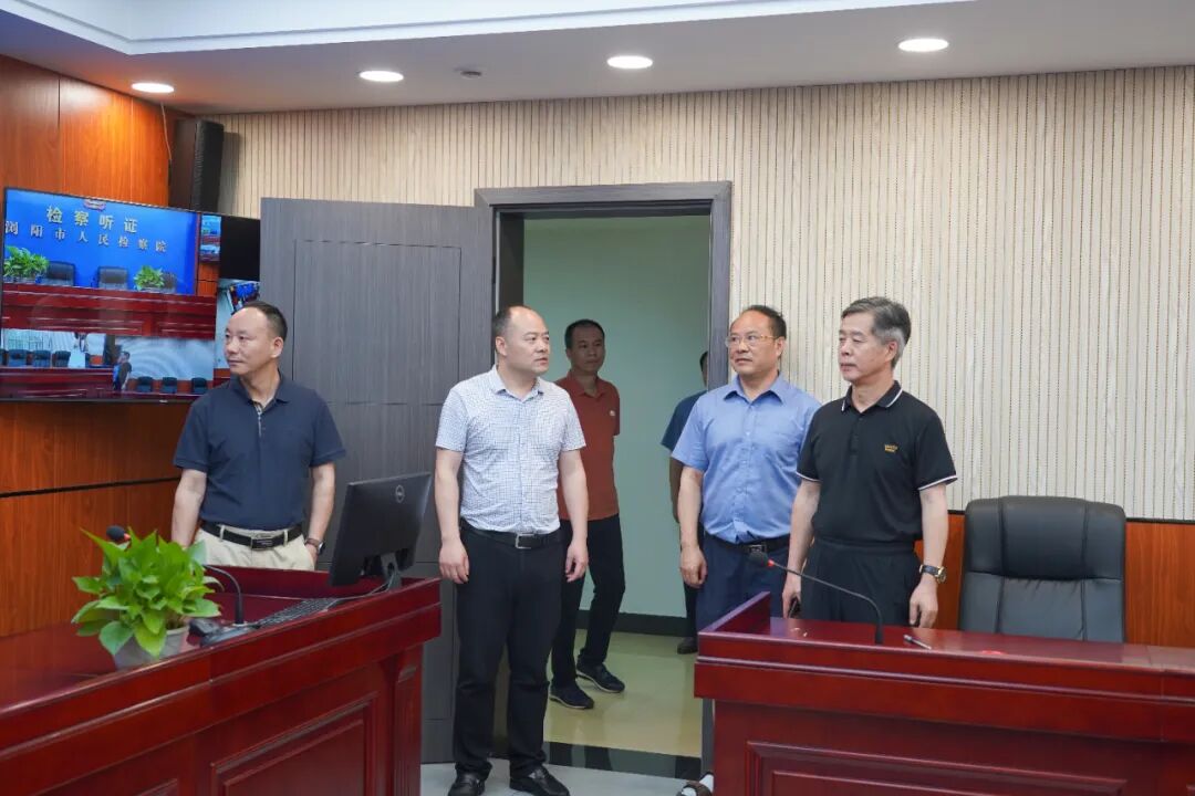 近日,湖南省人民检察院一级巡视员江涛一行到浏阳市检察院调研控告申诉检察工作。浏阳市检察院党组书记、检察长罗朝阳陪同调研。