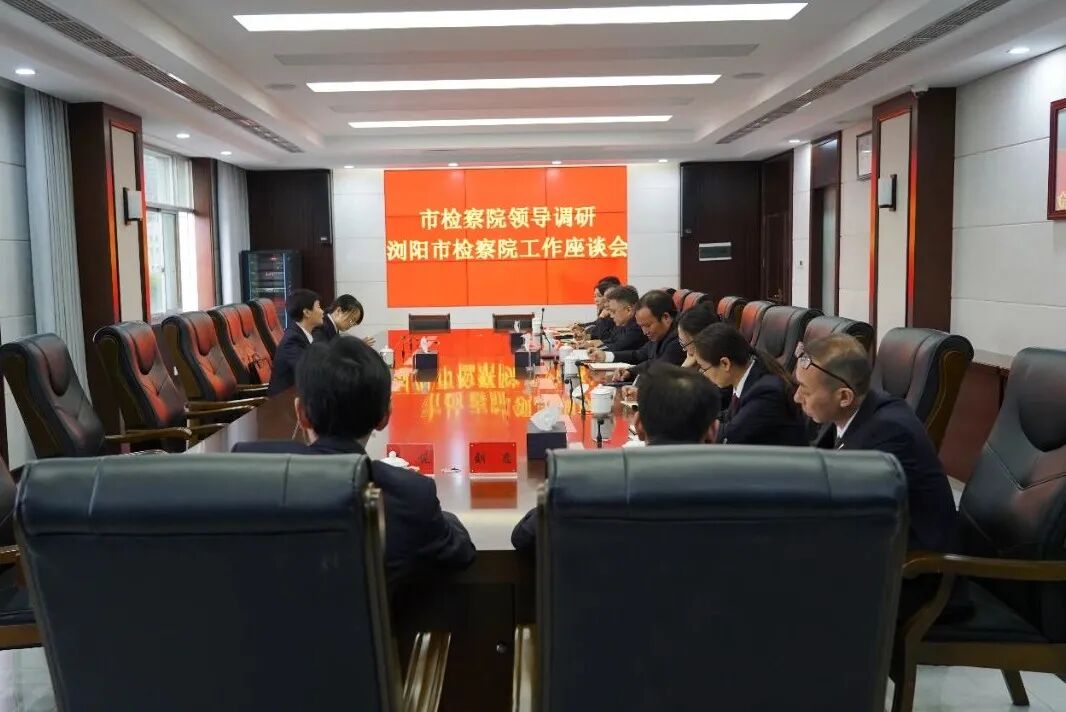 2023年10月20日,长沙市检察院党组副书记、副检察长周亚红一行来浏阳市检察院开展工作调研,浏阳市检察院党组书记、检察长罗朝阳主持调研座谈会。