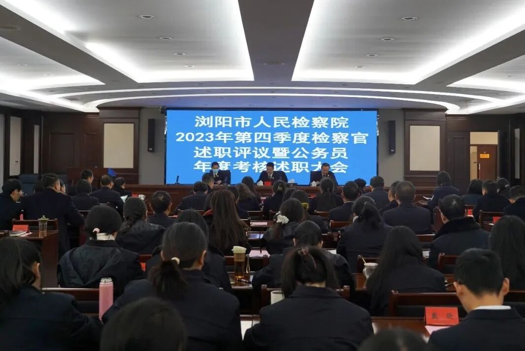 为深入贯彻司法责任制要求,促进检察干警履职尽责,根据长沙市检察院员额述职评议要求和公务员考核要求,12月22日,浏阳市检察院召开2023年四季度检察官述职评议暨年度公务员考核大会。长沙市检察院三级调研员、第二工作组组长喻湘川一行到会指导,浏阳市检察院全体干警、书记员参加会议。浏阳市检察院副检察长肖永琳主持会议。