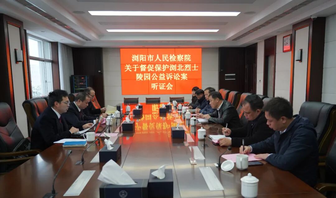 2024年1月22日,浏阳市检察院召开英烈保护行政公益诉讼案件公开听证会,邀请浏阳市人大代表、政协委员、人民监督员、“益心为公”志愿者、行政机关代表等参加。浏阳市检察院第五检察部主任彭勃主持,检委会专职委员贝承兵出席。