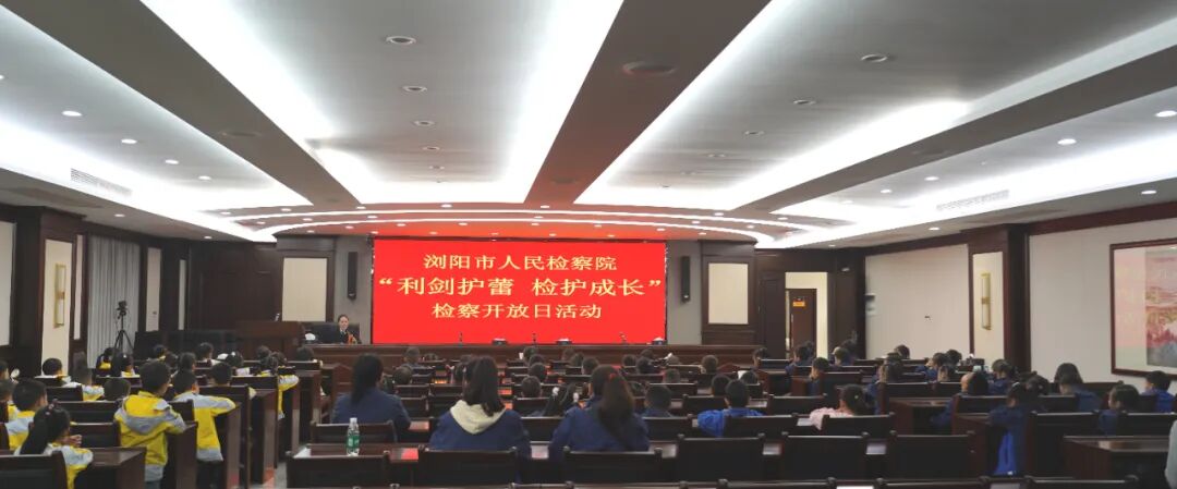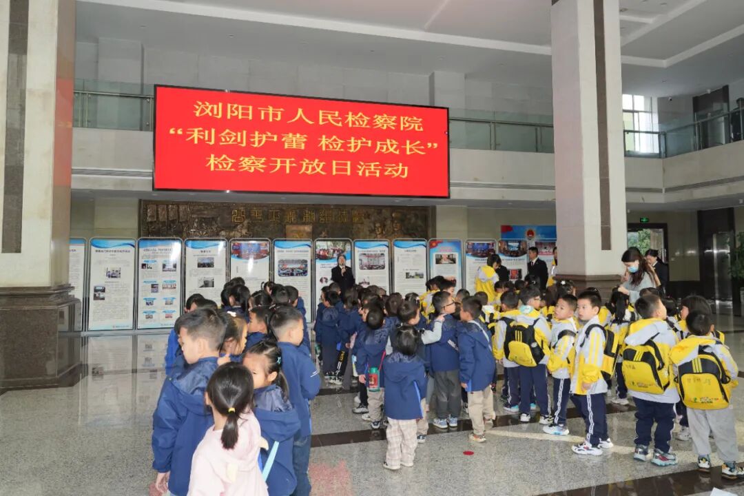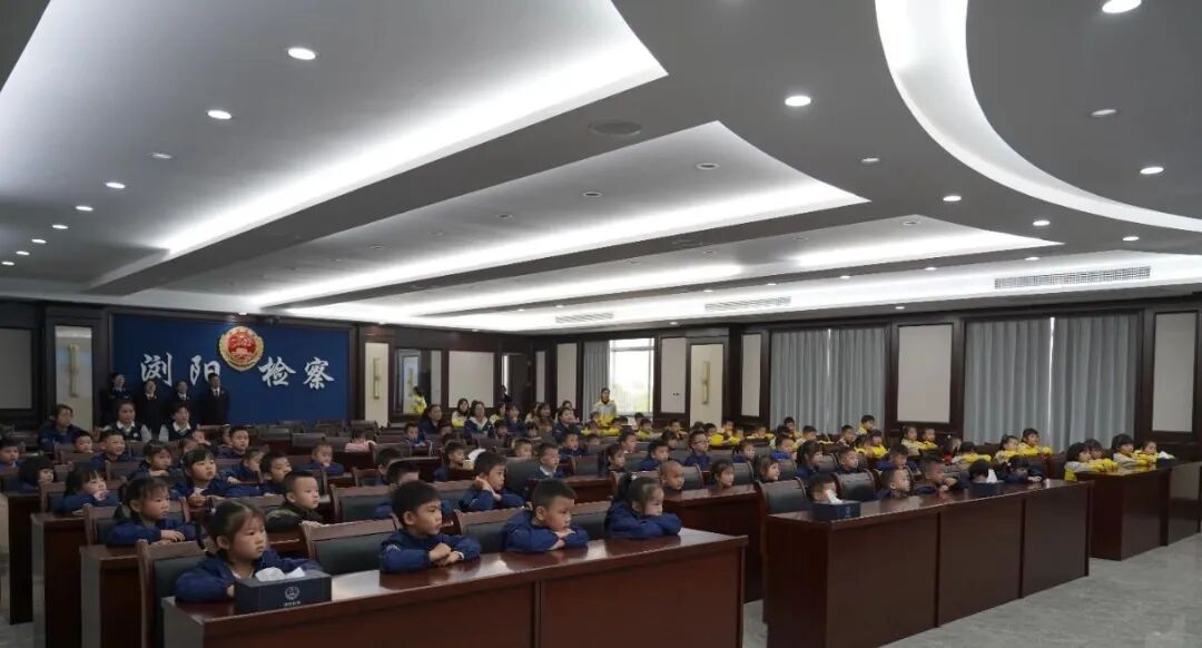 在金秋阳光明媚的上午,浏阳市检察院迎来了90余名活泼可爱的小访客,他们穿着园服,背着书包,手拉手,蹦蹦跳跳地走进了检察院。原来,是浏阳市贝乐幼儿园、凤凰山幼儿园的小朋友和老师们,来参加“利剑护蕾·检护成长”检察开放日活动啦!