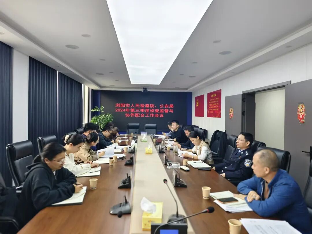 2024年11月1日,浏阳市人民检察院、浏阳市公安局联合召开2024年第三季度侦查监督与协作配合工作会议。浏阳市检察院党组成员、副检察长李宏伟,浏阳市公安局党委副书记、常务副局长刘桂贤,浏阳市检察院协管刑检业务专委及部门、团队负责人,浏阳市公安局法制大队、刑侦大队、危爆大队、治安大队、经侦大队等相关负责人参加会议。