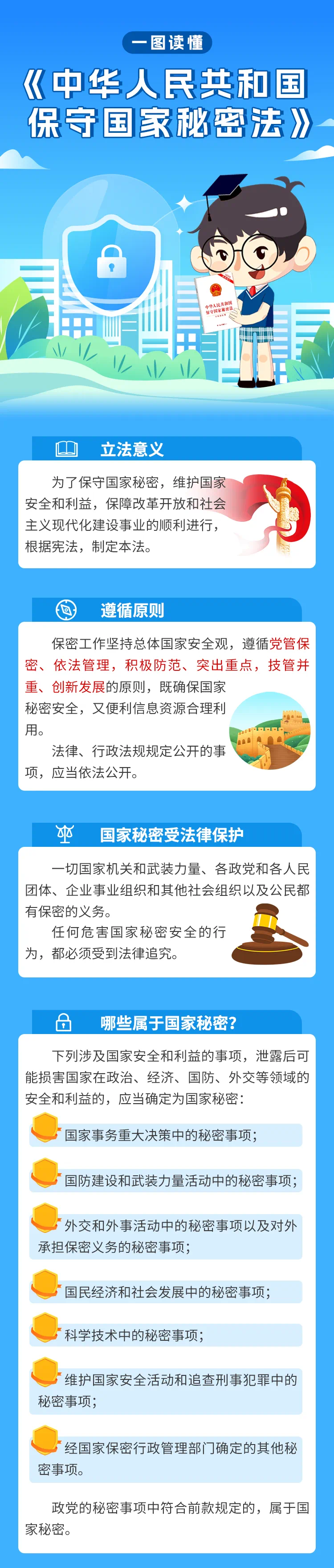2024年2月27日,《中华人民共和国保守国家秘密法》经第十四届全国人民代表大会常务委员会第八次会议修订通过,自2024年5月1日起正式施行。今天,用一图读懂的形式和大家一起学习《中华人民共和国保守国家秘密法》重点、亮点规定