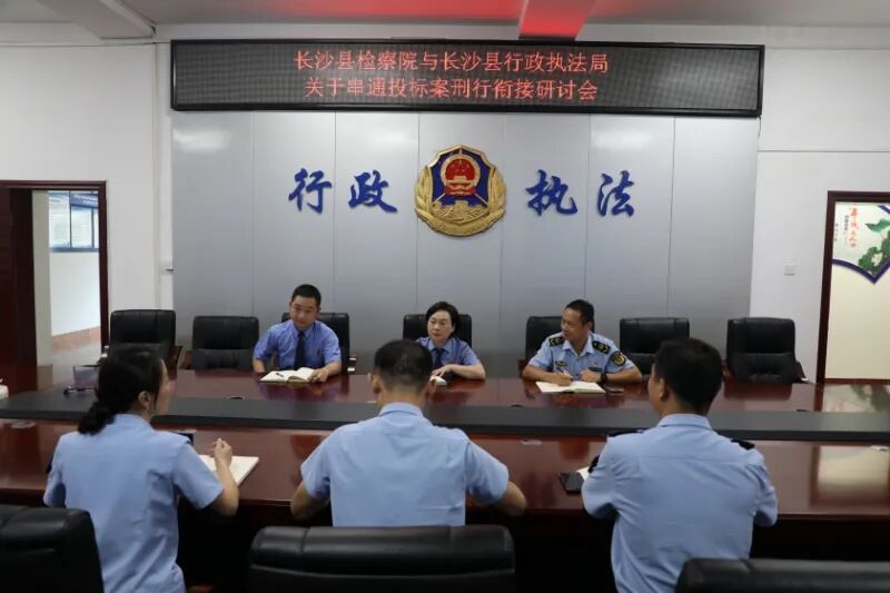 2024年10月10日,湖南省长沙县检察院与长沙县行政执法局就某公司串通投标行刑反向衔接案件召开研讨会。