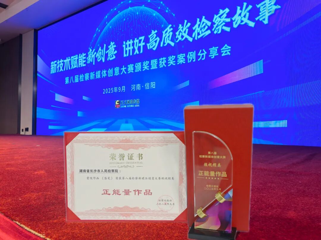 9月10日上午,第八届检察新媒体创意大赛颁奖暨获奖案例分享会在河南信阳举行。此次活动共收到投稿作品2256件,经过初评、复评、定评等多个环节评选,70件优秀作品、10个优秀新媒体团队、5个优秀新媒体品牌及12个优秀组织单位名单全部产生,并于今天公布。其中,长沙市检察院选送的《落笔》MV荣获短视频类“正能量作品”。