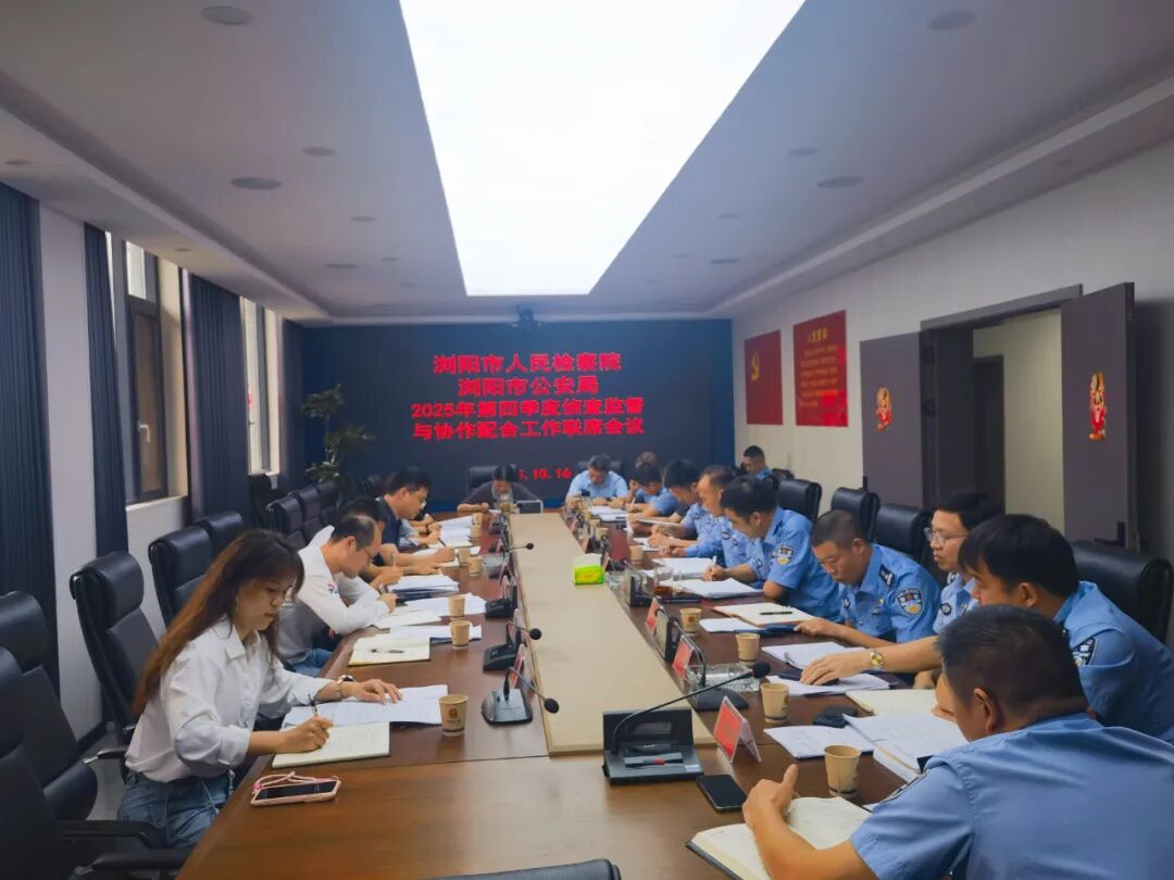 为进一步深化协作配合,提升刑事办案质效,2025年10月16日,浏阳市人民检察院、浏阳市公安局召开2025年第四季度侦查监督与协作配合工作联席会议。浏阳市检察院党组副书记、分管日常工作的副检察长胡海军,党组成员、副检察长李宏伟,浏阳市公安局党委副书记、常务副局长雷觉,浏阳市检察院协管刑检业务专委及部门团队负责人,浏阳市公安局法制大队、刑侦大队、经侦大队、治安大队、危爆大队、交警大队等相关负责人参加会议。